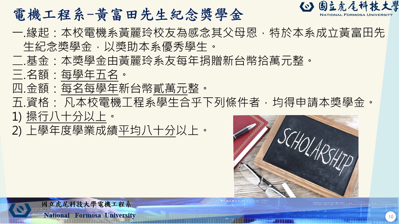 電機工程系-黃富田先生紀念獎學金